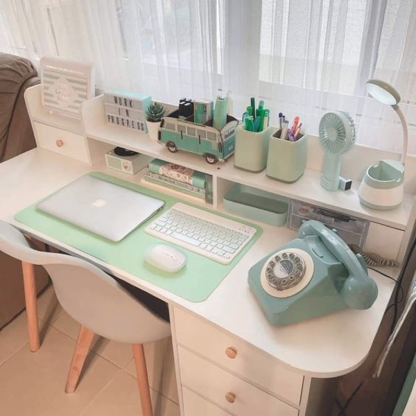Và cuối cùng là nếu có thể, hãy sử dụng tông màu nhạt, thanh mát cho góc làm việc của bạn.