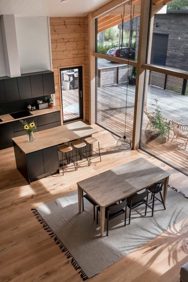 Vì thiếu ánh sáng tự nhiên nên các ngôi nhà Scandi luôn có những khung cửa sổ bằng kính rộng hoặc những cửa sổ kính sát đất để có thể đón tối đa ánh sáng tự nhiên vào nhà. Cũng bởi điều này nên các ngôi nhà Scandi có tầm nhìn rộng rãi hơn, sự ngăn cách với thiên nhiên trở nên nhỏ hơn. Do đó căn nhà cũng trở nên rộng và thoáng hơn.