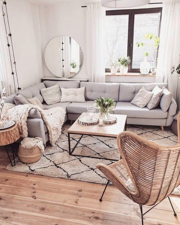 - Vật liệu tự nhiên: Sử dụng các vật liệu tự nhiên là một trong những điểm chính của một ngôi nhà thiết kế theo phong cách Scandi này. Bạn có thể kết hợp các chất liệu khác nhau như mây, tre, gỗ, da, thông thú,... với các món đồ nội thất khác nhau như bàn, ghế, thảm, tủ đựng đồ,...