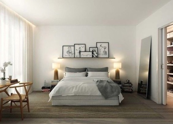 Phòng ngủ càng đơn giản và tinh tế nhưng vẫn đi kèm với các đặc trưng của phong cách này như cửa sổ rộng, màu sắc nhạt, đèn vàng, chất liệu bàn ghế bằng gỗ,...