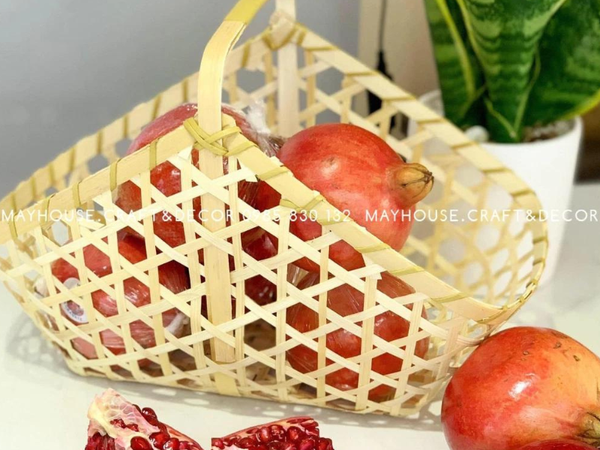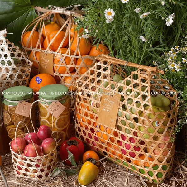 Giỏ tre mắt cáo nhà May có thiết kế đơn giản, nhưng vẫn rất tinh tế. Giỏ được làm từ bàn tay của các nghệ nhân lành nghề của làng nghề thủ công Việt Nam, các đường đan chắc chắn, tỉ mỉ. Mọi người dùng giỏ bánh kẹo, trái cây, thức ăn...tặng bạn bè, người thân, đối tác trong các dịp lễ, Tết... hoặc trang trí, decor phòng đều được.